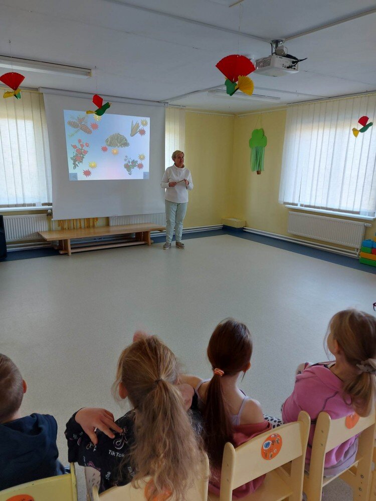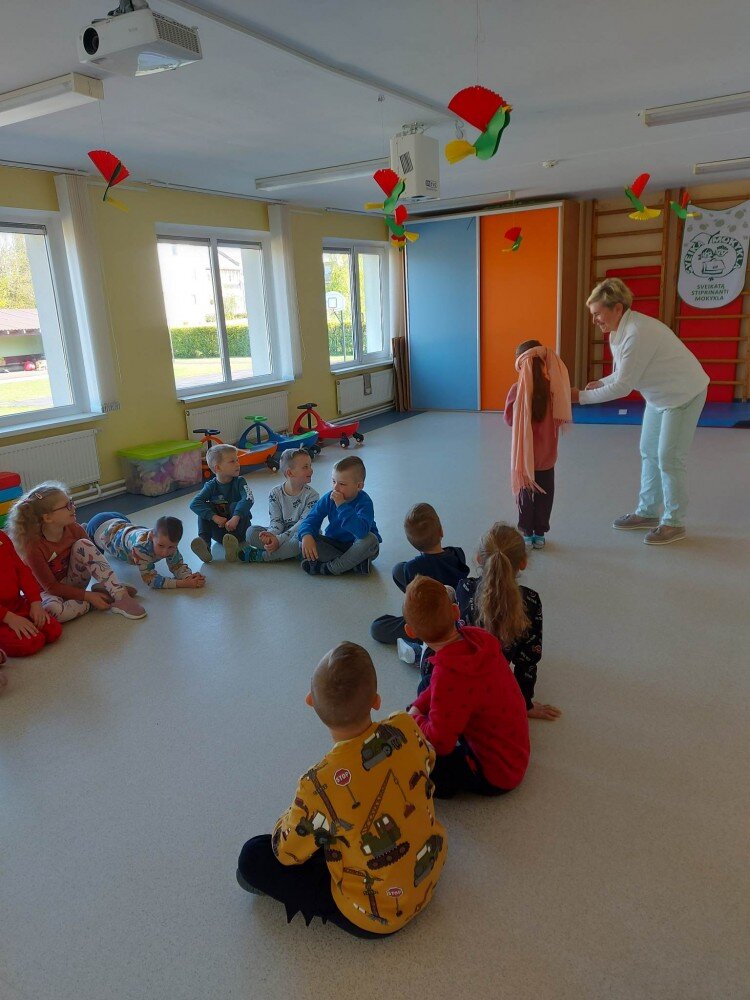 2023-05-09 vyko kalbinė pramoga „Garsiukų ir raidžių šalyje“ „ Linksmuolių gr. ugdytiniams, kurią suorganizavo ir pravedė darželio logopedė Ilona Puškorienė ir mokytoja Odeta Ąžuolaitė. Vaikai žaidė įvairius smagius žaidimus: „Mano vardo pirma raidė“, „Ar yra garsas Ž ?“, „Surask žodžio pirmą raidelę“, „Sudėk žodį iš kaladėlių“, „Ieškau varpelio“, „Sudėk raidelę iš kaštonų“.Žaisdami šiuos žaidimus vaikai suprato, kad garsai ir raidės yra susiję, kad visus garsus galima pažymėti raidėmis, o iš raidžių – sudaryti žodžius.
