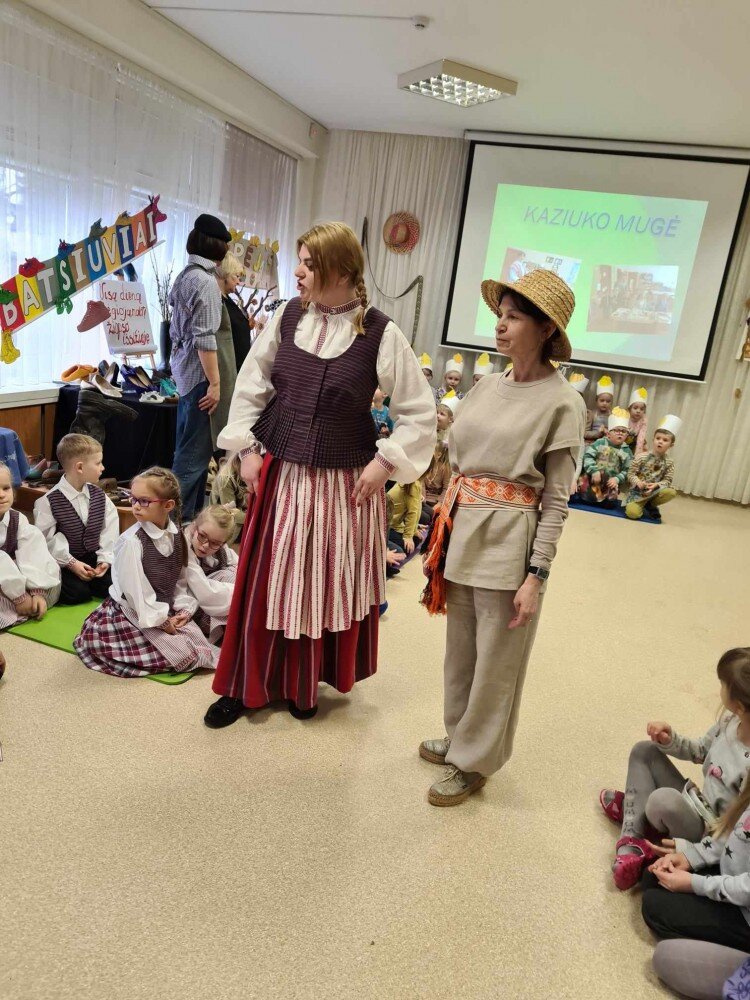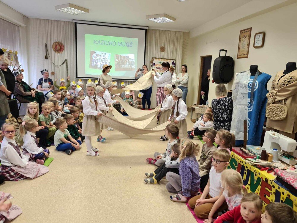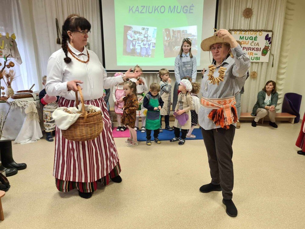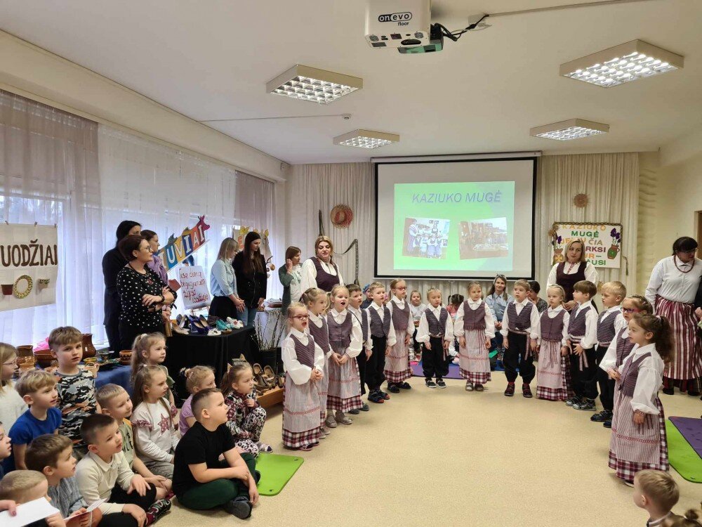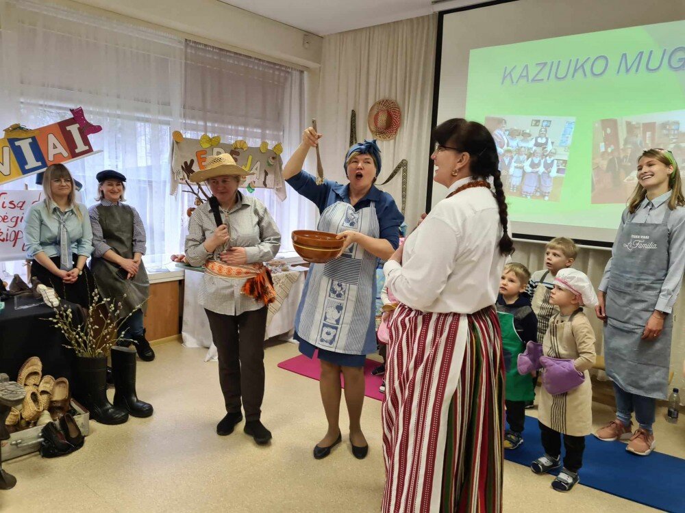 Likus kelioms dienoms iki Kaziuko mugės, „Naminuko“ ir „Saulutės“ lopšelių-darželių mokytojos, renginio rengėjos ir organizatorės: Jovita Klymantienė, Snaiguolė Linkienė, Rima Rimeikienė, Lina Pocienė, Karolina Šimuliūnaitė ir meninio ugdymo mokytoja Jūratė Dirškienė pakvietė įstaigos bendruomenę į šventinį rytmetį „Kaziuko mugė. Amatai ir tradicijos“. Renginiui ruošėmės visi: mokytojai, tėvai, vaikai, specialistės, padėjėjos ir administracija. Šventės tikslas: supažindinti ugdytinius su amatais, gebėti juos pristatyti, ugdyti bendruomeniškumo jausmą, puoselėti etninės kultūros tęstinumą. Dainavome, šokome, žaidėme… Pristatant amatus, nepamiršome ir žemaičių kalbos. Žemaitiškai kalbėjo ne tik suaugę, bet puikiai sekėsi ir mažiesiems dalyviams. Buvo smagu. Nuoširdus AČIŪ renginio organizatorėms.