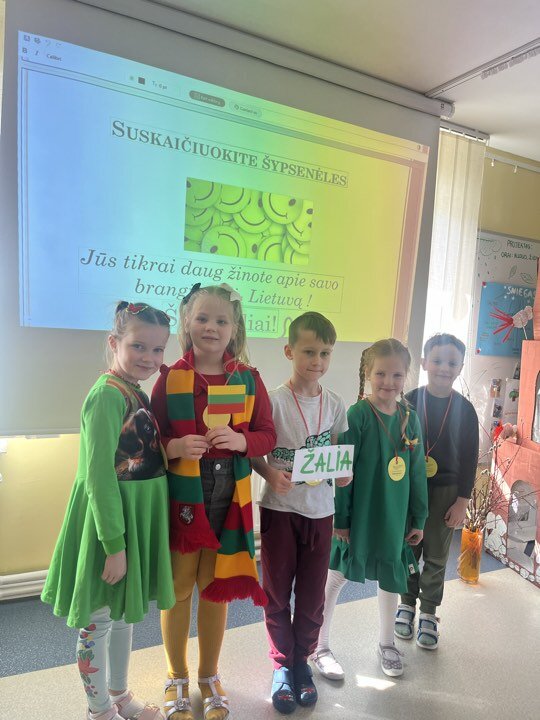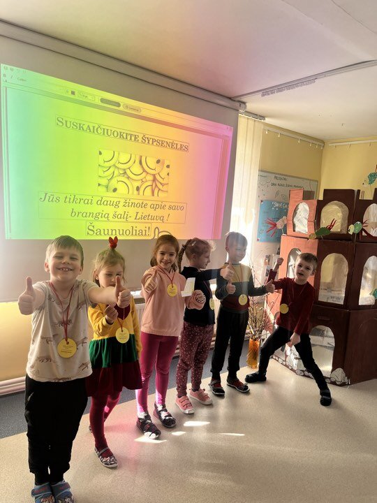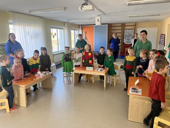 Artėjant Lietuvos nepriklausomybės atkūrimo dienai, vaikai, jų tėveliai ir mokytojos kovo 6d. susirinko į šventinę viktoriną “Lietuviais esame mes gimę”. Viktoriną pradėjome giedodami tautišką giesmę. Geltonųjų, žaliųjų ir raudonųjų komandos aktyviai dalyvavo ir parodė žinias apie savo gimtąją šalį – Lietuvą. Visi dalyviai buvo apdovanoti medaliais. Na, o šventinę viktoriną vainikavo Lietuviški skoniai: duonelė su medumi ir obuolių sultys.