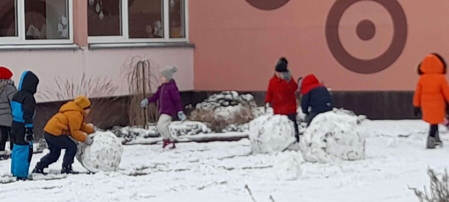 ,,Linksmuolių” grupės vaikai mokosi varyti kamuolį. -